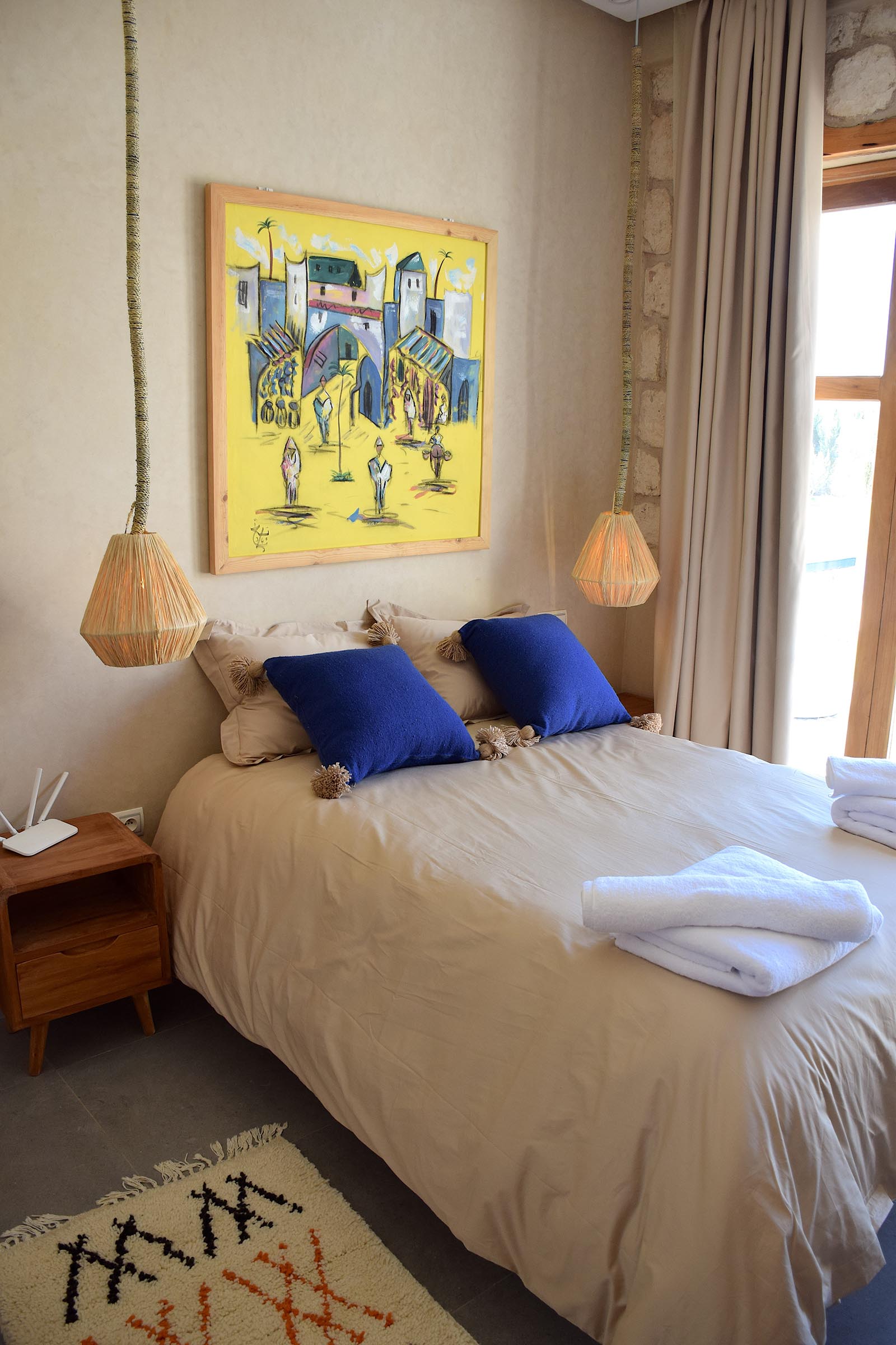 1 Chambre couloir : 1 lit Queen160x200 + salle de bain douche en tadelak/wc