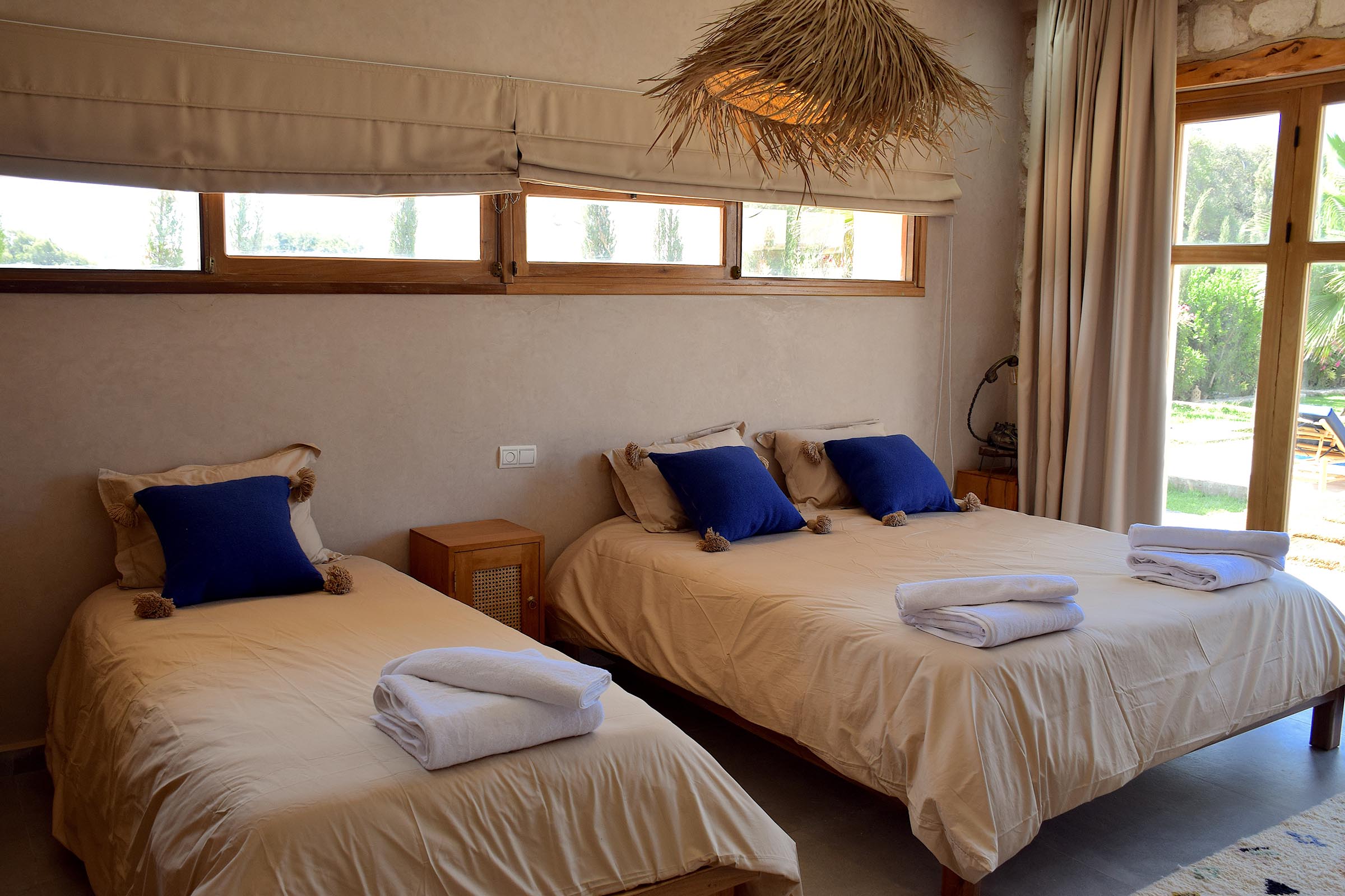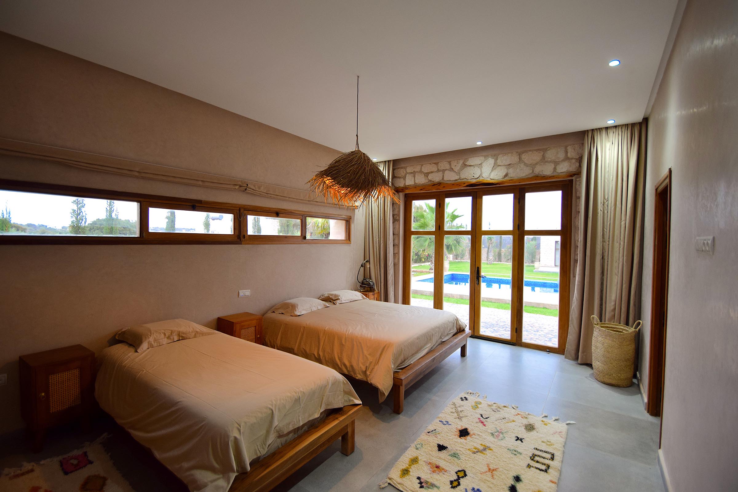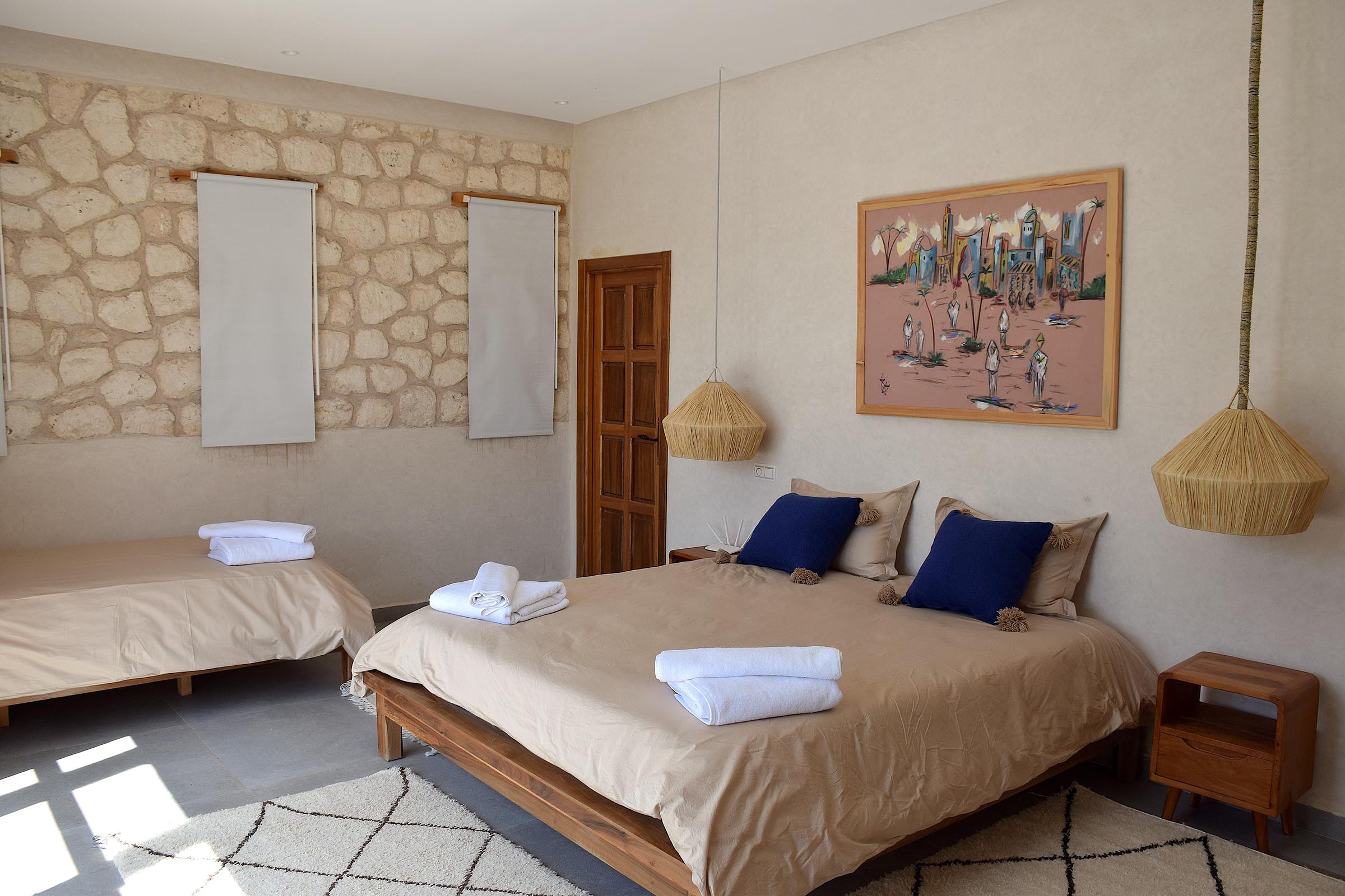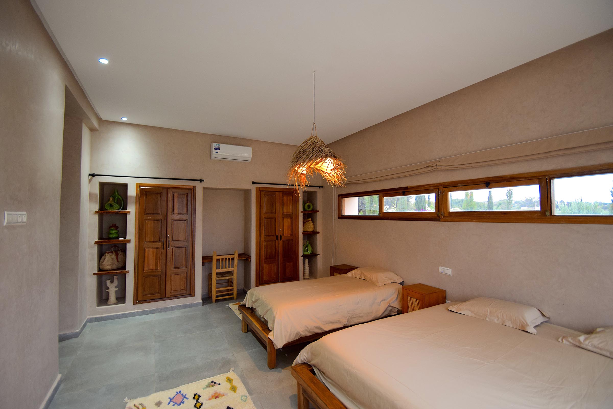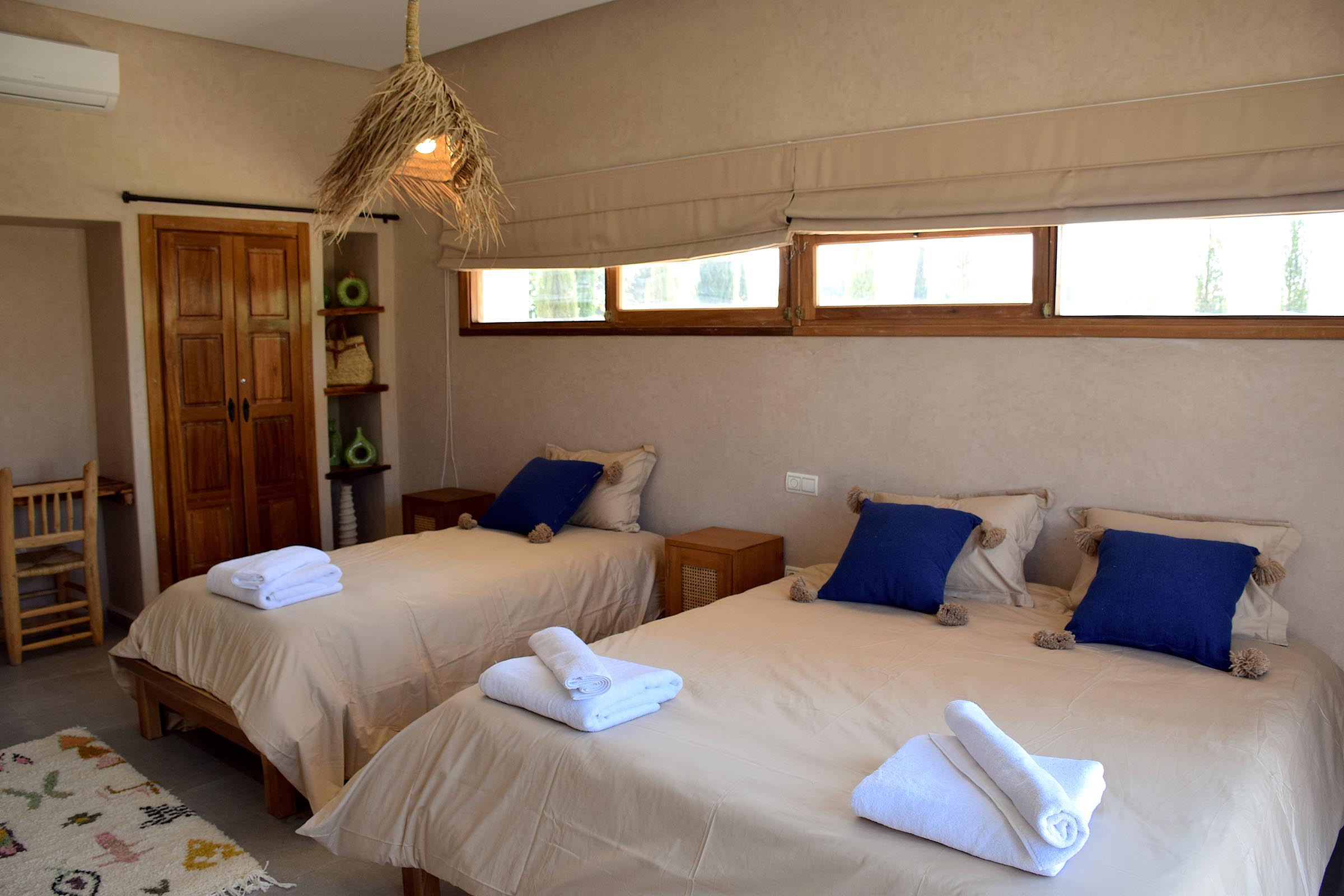 Suite 2 : 1 lit King size 180×200 + 1 lit single 90X200 ( possible rajouter 1 lit single pour dortoir) + salle de bain douche en tadelak /wc