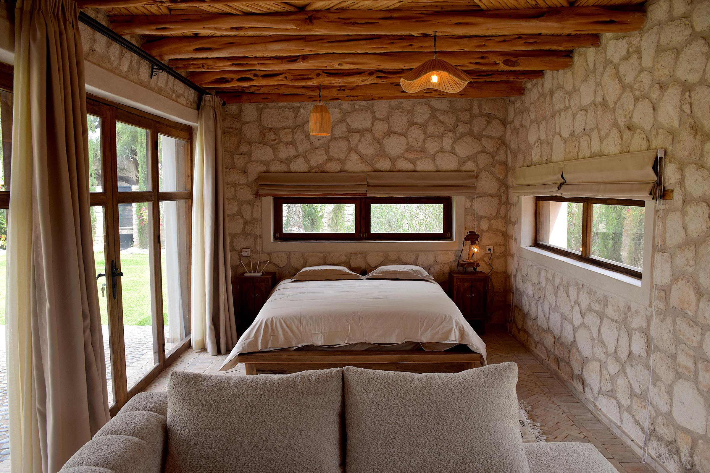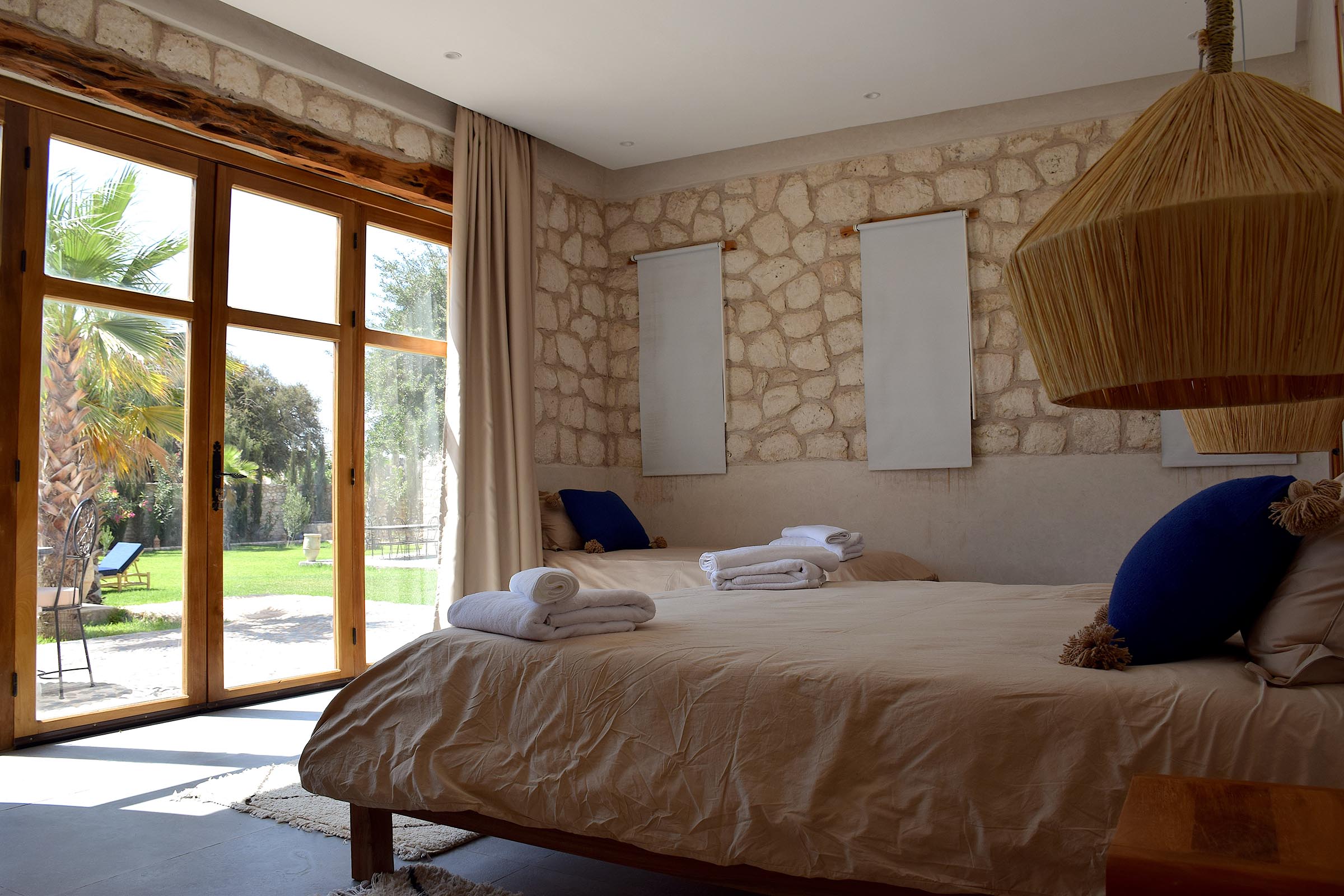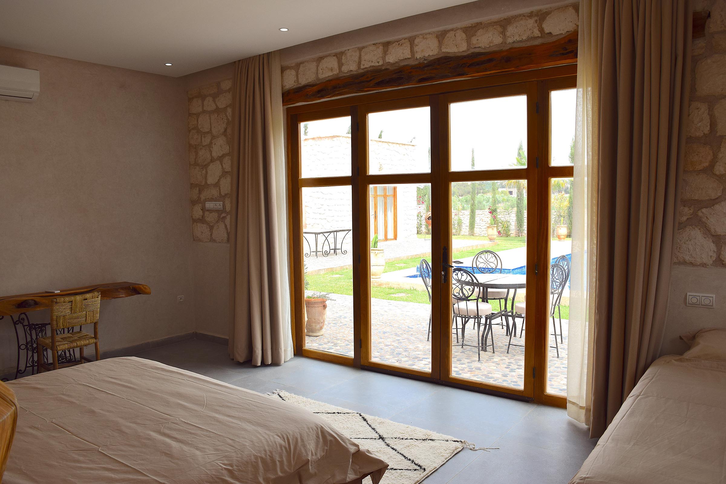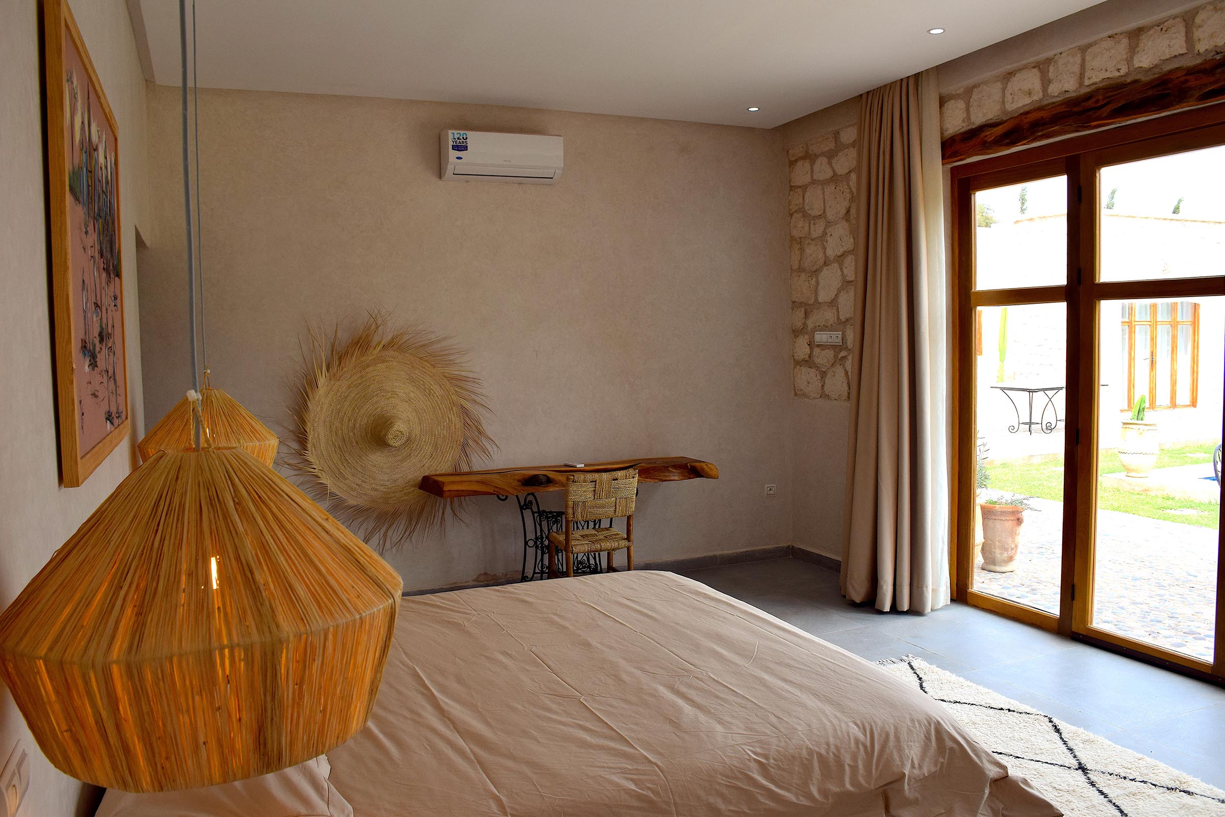 Suite 2 : 1 lit King size 180×200 + 1 lit single 90X200 ( possible rajouter 1 lit single pour dortoir) + salle de bain douche en tadelak /wc