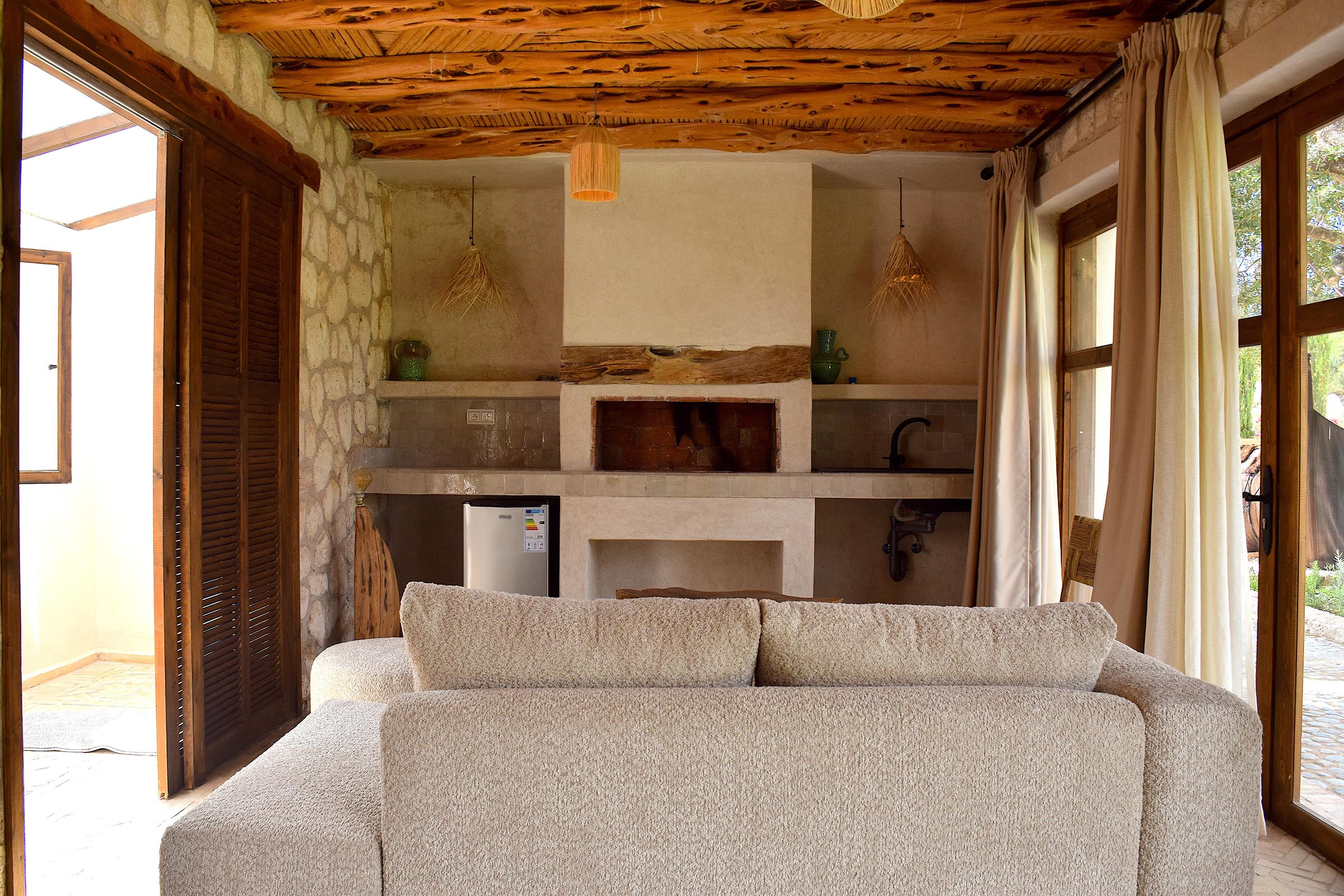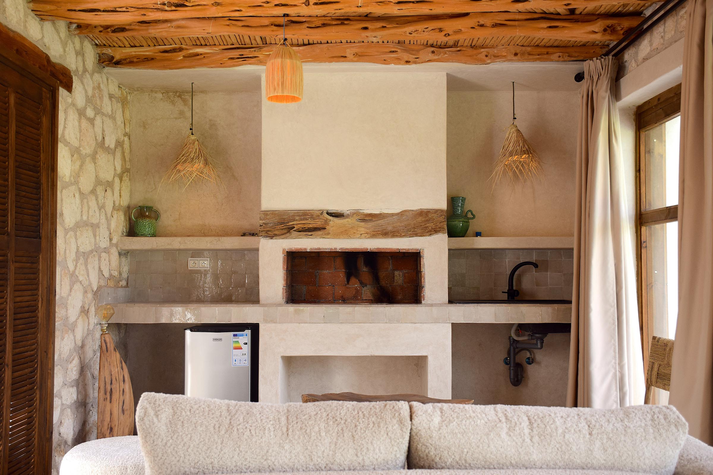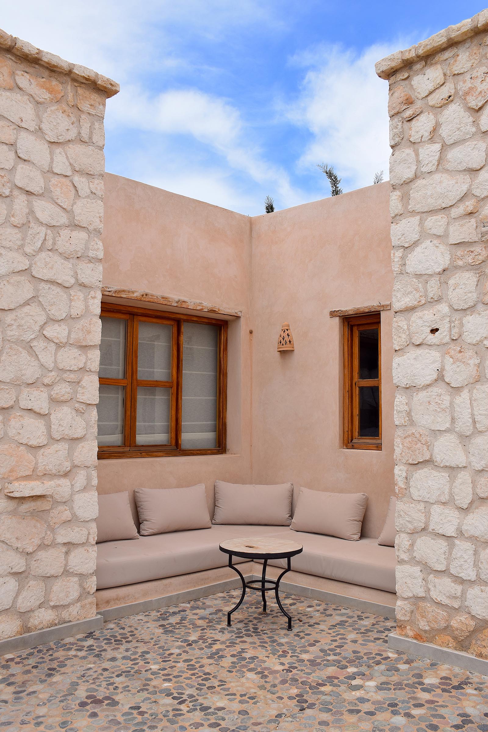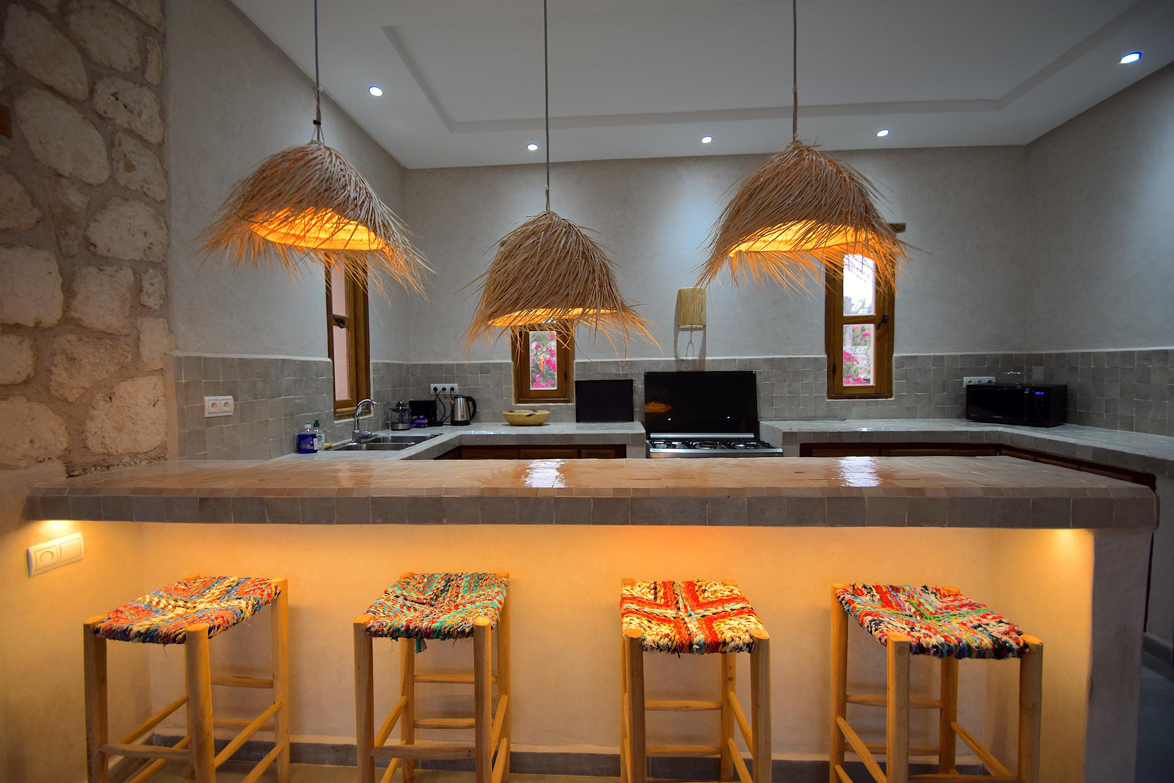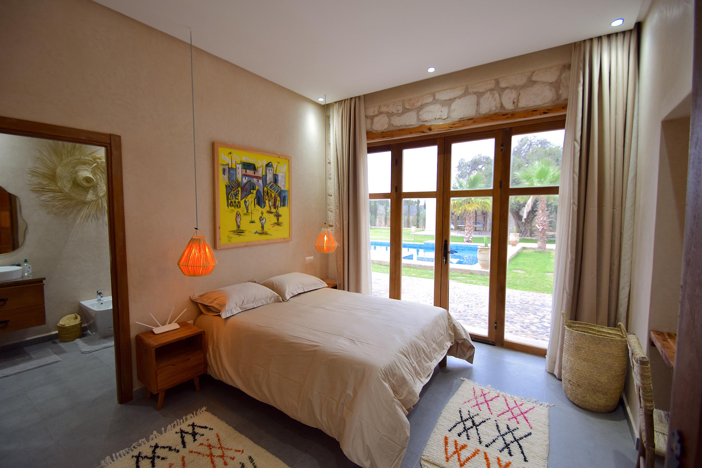 Suite 2 : 1 lit King size 180×200 + 1 lit single 90X200 ( possible rajouter 1 lit single pour dortoir) + salle de bain douche en tadelak /wc