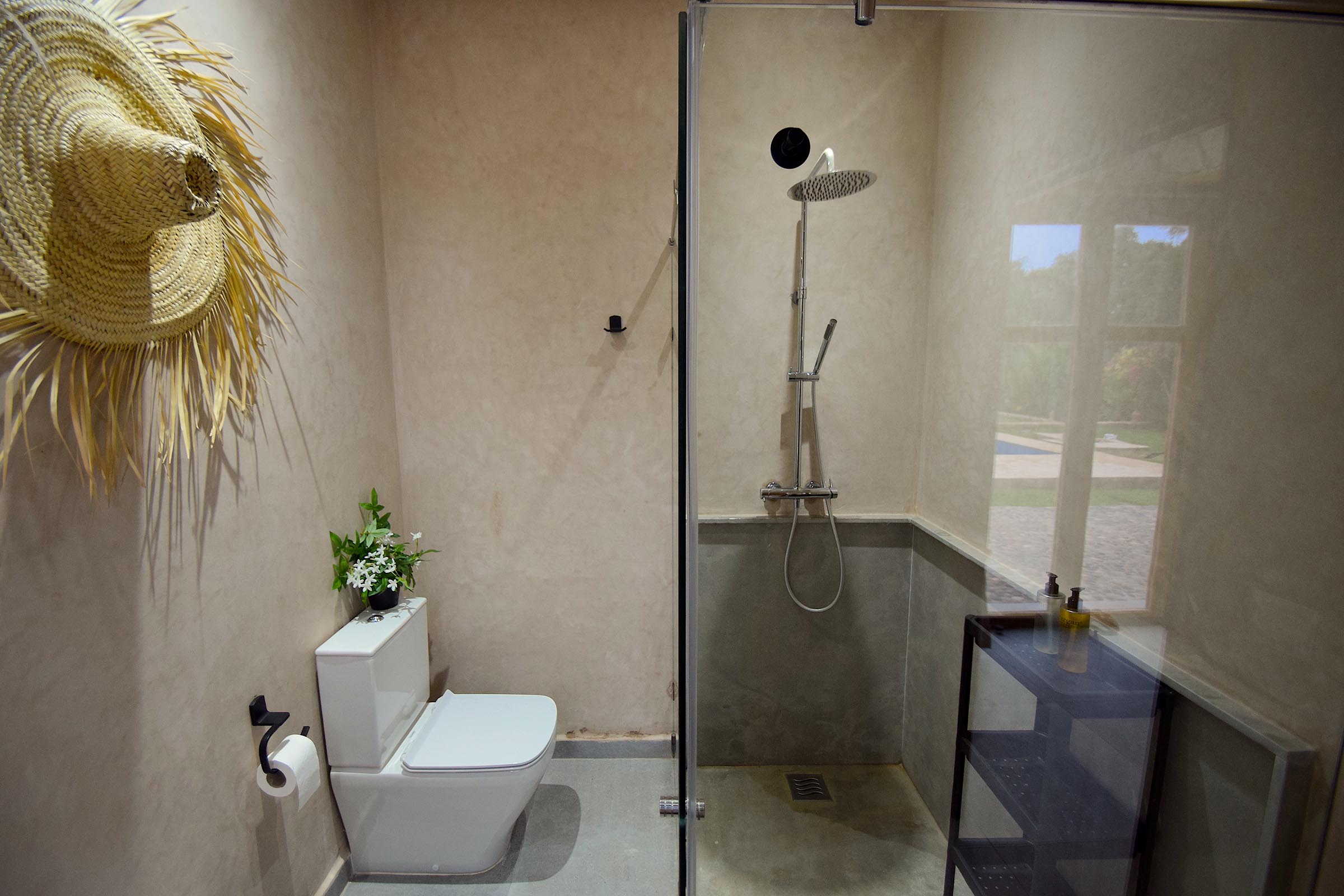 Suite 3 dans la dépendance du jardin : 1 lit Queen size 160×200 + salle de bain douche en tadelak/wc + terrasse privative